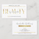 Glam gold effect beauty salon or spa business cards with trendy serif and script fonts, faux gold effects and modern layout. Create professional business cards for your lash, brows or beauty salon, makeup studio or spa using this aesthetician business card design. Featuring white background and gold effect text that reads 'BEAUTY' with space for your custom name and contact details.