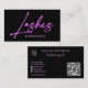Modern glam purple neon lashes script logo qr code business card