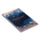 Modern personalized notebook design featuring a blue glittery background with faux gold foil, purple and pink paint splatters and twinkle lights. The text is fully customizable.