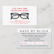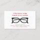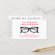 Use this dual purpose optometry themed business card featuring a pair of reading glasses with the reflection of an eye chart in the lenses to remind patients of their upcoming eye exam or appointment. Personalize by adding the name of the optometrist or ophthalmologist and clinic contact information.