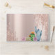 The glitter and rose gold elements are simulated in the artwork by the Creator. These elements will not be used in the making of this product.
