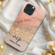 This luxurious design features a stunning ombre effect that transitions from shimmering gold glitter to elegant rose gold marble. Personalized with your monogram,initials or any text. This case exudes sophistication and style, making it a perfect blend of glamour and functionality. Ideal for those who love a chic, modern aesthetic, this iPhone case offers both protection and a unique, personalized touch.