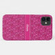 Modern girly glittering magenta pink with belt and name iPhone Case. Name text can be personalized. Ideal for girls and women who love pink!