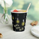toast to a shining future with these elegant happy new year paper cups. the design highlights a warm yellow glow from hanging light bulbs and twinkling stars, providing a sophisticated way to serve drinks at your holiday event. these convenient disposable cups are ideal for champagne toasts, festive punch, or warm cider during your countdown party. the high contrast black and gold theme adds a modern touch to your beverage station, making your celebration both stylish and stress free. share a drink and a message of inspiration with your guests as you welcome the brand new year.