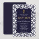 Modern Gold And Navy Blue Boy Baptism Invitation