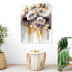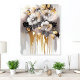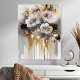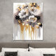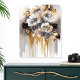 Add a touch of sophistication to your decor with this peel-and-stick acrylic wall art tile. Featuring elegant white flowers with bold black accents and shimmering gold details, this design is a luxurious blend of modern style and artistic beauty. Perfect for living rooms, bedrooms, or offices, this tile creates an eye-catching centerpiece for any space.