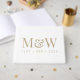 Modern Gold and White Monogram Wedding Guestbook. A stylish modern typography design that is gorgeous and versatile. Shown in antique gold colored text on white. Customize with your Bride and Groom monogram initials and wedding date on the front cover, and names on the spine. We invite you to visit our Zazzle store, Austen & Grace, to view the full wedding suite, matching products and more. Please contact us if you require any assistance.