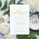 Modern and chic gold and white wedding ceremony sheet programs feature a stylish gold colored typographic design with bold calligraphy script accents and elegant custom text that can be personalized for your bridal party, ceremony information, and thank you message. Note: these text weight paper programs arrive flat and require folding to assemble.