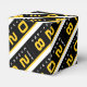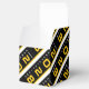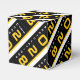 Graduation favor box in black, white, and yellow — bold all-over pattern featuring repeating diagonal stripes of "Congratulations," class year numerals, and "Class of" in high-contrast yellow and white on a dramatic black background. A striking party favor equally suitable for a private graduation celebration, a school party or class event. Part of a complete graduation collection including announcements, invitations, thank you cards, party invitations, enclosure cards, envelope seals, favor tags, yard signs, and banners. Fully customizable for your Class of [Your Year] celebration. Need design support? Email remidevandesigns@gmail.com RemideVan©