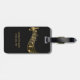 This modern gold and black custom luggage tag features music notes and a treble clef on music staves, complemented by elegant script typography. It's an ideal accessory for professional musicians, violin teachers, piano students, flutists, and music lovers who wish to travel in style. Personalize it with your details and use the editing tool to adjust the font's size and placement according to your preferences.