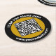 Modern Gold Black QR Code Custom White Text Round Paper Coaster