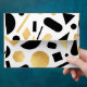 This modern, unique, and trendy design is perfect for the stylish and contemporary individual. It's faux printed gold foil and black geometric shapes on top of a simple white background. It's sleek, chic, and luxurious.