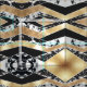 This modern and chic design is a glamorous infusion of elegance and class. It features a faux printed sparkly gold glitter sequin, black, gold foil, white marble, and black marble geometric color blocks. Its arranged in a messy chevron pattern and stack with contrasting patterns and colors, giving it a stylish and trendy vibe.