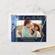 Modern Gold Blue Agate PHOTO Save the Date Announcement Postcard