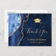 Modern Gold Blue Marble Agate Graduation Thank You Postcard