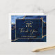 Modern Gold Blue Marble Agate Graduation Thank You Postcard.