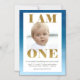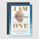 Modern gold watercolor lettering "I AM ONE" highlight the photo of your baby's 1st birthday MAGNETIC invitation. Available in other color combinations you can easily add you party details to this first birthday invitation template. The border of this kids birthday invitation is in a blue watercolor wash.