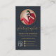 Modern gold on dusty navy blue color photo qr code logo photographer business card. Add 2 photos, your logo, social media and qr code to show your price list, appointment, portfolio and more!. Simple with a circle photo mask and an elegant modern script brush typography,