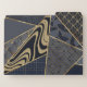 Elegant and unique gold strokes triangles compilation, featuring a collection of triangles geometric shapes filled with a variety of geometric patterns, mermaid scale, checkered, squares, wavy swirls, retro daisy flowers, chevron zigzag, dots, in shining faux gold and blue shades. Modern, luxury gold geometry art design.