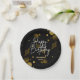 A modern, stylish and glamorous birthday paper plate. This design features a vibrant typography "Happy Birthday" with gold gradient bokeh on a black background. Personalize and add your party details. Make your milestone birthday an extraordinary event!