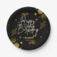 Modern Gold Bokeh Gradient Black Happy Birthday Paper Plates