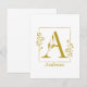 Modern Gold Botanical Letter A Personalized Note Card
