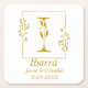Pretty square paper coaster features gold hand-drawn botanical frame with botanical letter I in center. Personalize with couple's name, date or other message.