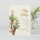 Modern Gold Bow Watercolor Christmas Tree Happy Holiday Card