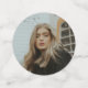 Modern gold calligraphy photo orange graduation confetti is perfect for your graduation party, featuring faux gold foil calligraphy type, plus your graduate's photos.