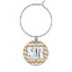 Modern Gold Glitter Chevron Zig Zag Stripe Fabric Print Pattern Monogram Initial Wine Charms Personalized