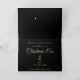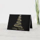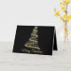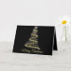 Modern Black and Gold Christmas greeting card with elegant gold Christmas tree with a black background with gold text.