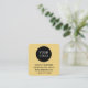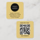 Modern gold Custom Logo and QR Code Square Square Business Card design features your business logo and custom QR code on the back. Customize the wording with your preferred business information, such as the business name, address, phone number, or website. Black background and white text color can be changed.