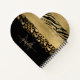 Girly modern animal print heart notebook - both zebra and leopard - in brush strokes with gold, glitter, black and adorned with your script monogram, first name and initial.