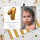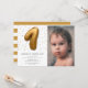 Modern Gold Foil Balloon 1st Birthday Photo Invitation