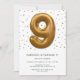 Modern Gold Foil Balloon 9th Birthday Invitation