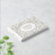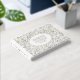 Modern gold foil leaves and frame wedding guest book. This design features a lovely pattern of leaves and your wording all in gold foil in a white frame with gold outline. The back includes the same pattern of gold leaves.