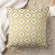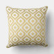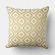 Square accent pillow design features a stylish wavy diamond geometric graphic pattern. Colors are white and gold
