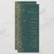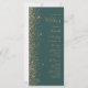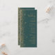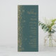 The left-hand edge of this elegant modern wedding program features a gold faux glitter design. The customizable text combines gold-colored handwriting, copperplate and italic fonts on a dark green background.