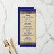 This modern wedding menu features a rich gold glitter confetti effect on a deep royal blue background. A classy design for any wedding theme. You can add your menu details by clicking on the customize link. Also available are matching place cards and table number cards along many more essentials