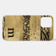 Girly modern animal print - both zebra and leopard - in brush strokes with gold, glitter, black and adorned with your script monogram, first name and initial. for the iPhone 12.