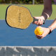 Stylish gold glitter black script name women's pickle ball paddle. Personalize with your name..