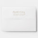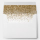 The inside of this elegant modern wedding invitation envelope features a gold faux glitter design on a white background. Customize the back flap with the names of the bride and groom in gold-colored handwriting script and return address in copperplate font on a white background.