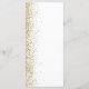 The left-hand edge of this elegant modern wedding menu features a gold faux glitter design. The customizable text combines gold-colored handwriting, copperplate and italic fonts on a white background. The reverse side features a matching white and gold glitter design.