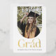 Modern Aesthetic Grad Arched Photo Graduation Announcement Cards, where simplicity meets chic elegance. These A7 cards feature the word "Grad" in a beautifully modern and chic typography, set above a vertical picture of the graduate on the front, creating a striking visual impact. The back of the card offers a canvas for a horizontal picture, complemented by space for a heartfelt thank-you message or an invitation to your graduation celebration, all elegantly framed with a dominant white background and touches of black for the font. This design perfectly encapsulates a modern aesthetic, blending sophistication with personalization to celebrate your academic achievement.