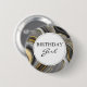 A birthday girl button with an abstract design with an agate geode mineral pattern. Gold, gray, white, and black swirl together forming elegant waves of color.
