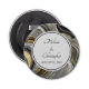 A bottle opener with an abstract design with an agate geode mineral pattern. Gold, gray, white, and black swirl together forming elegant waves of color.