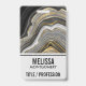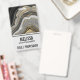 Name badge with an abstract design with an agate geode mineral pattern. Gold, gray, white, and black swirl together forming elegant waves of color.