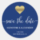 Modern Gold Heart Navy Blue Wedding SAVE THE DATE Classic Round Sticker