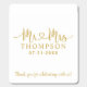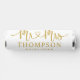 A warm and luminous wedding mint favor featuring "Mr and Mrs" in decorative gold heart script calligraphy with the couple's surname displayed as a radiant monogram centerpiece on a soft white background. Rich gold tones bring a celebratory elegance to this romantic design. Personalize the names and wedding date for a lovely reception treat. All text is fully editable.