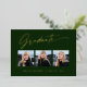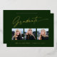 Three photo, stunning, modern and elegant graduation announcement gold foil cards (your choice of gold silver or rose foil), featuring design elements of modern text with calligraphy ink script. The graduate's photos are artfully accented with a delicate & minimalist partial boarder. The back of the card offers personalized text spaces for information about your graduation or can be cleared if you wish to hand write a message. Emerald forest green or easily customize the background to match your school's primary color or any color of your choice. Perfect for the high school, college and university grad student.